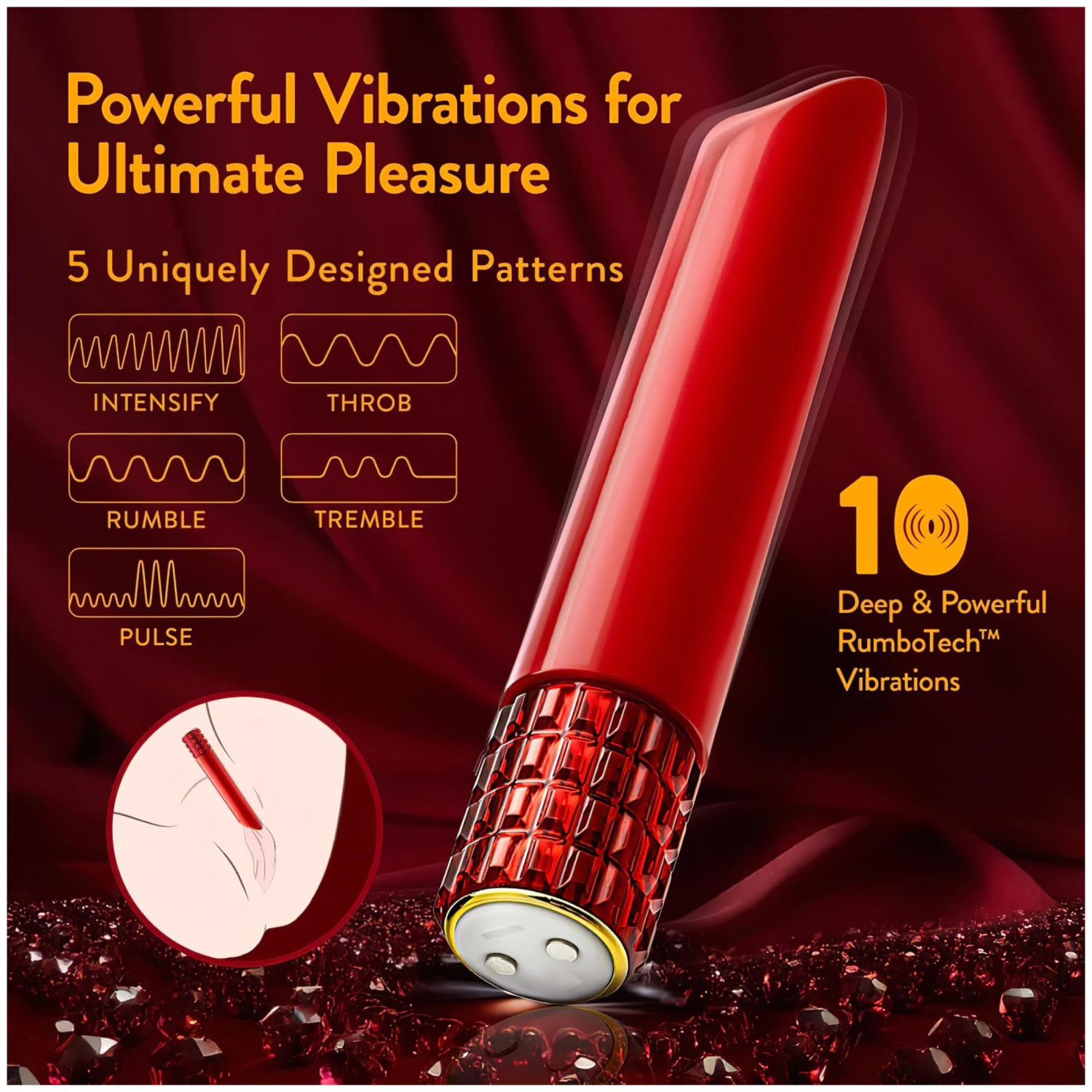 • Моћан мотор: 10 режима вибрације (5 брзина + 5 шаблона) за разноврсна искуства.